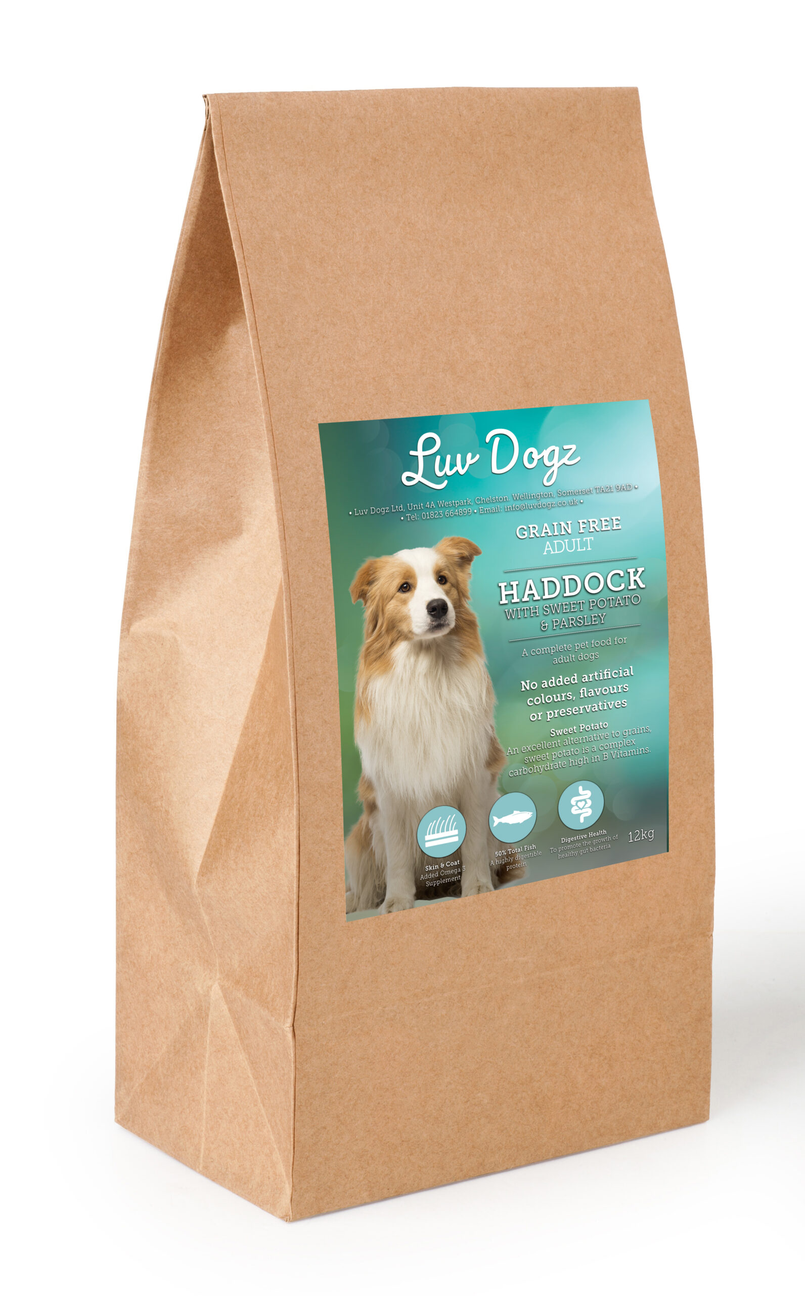 Fish 50% (including Freshly Prepared Haddock 26%, Dried Salmon 17.5%, Trout Oil 4.5%, Salmon Stock 2%), Sweet Potato (24%), Peas (7%), Potato, Beet Pulp, Olive Oil, Linseed, Sunflower Oil, Vitamins, Minerals, Parsley (0.3%), Vegetable Stock, FOS (96 mg/kg), MOS (24 mg/kg).